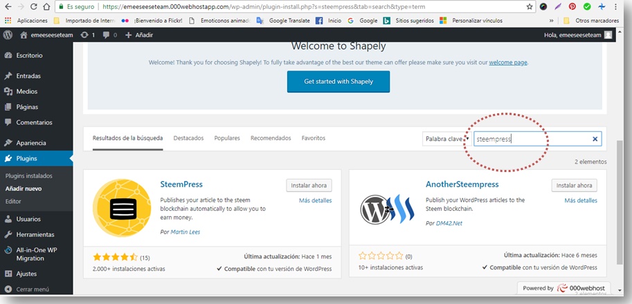 Tal como hicimos mención en la publicación anterior, la dirección URL que brindará de manera gratuita un subdominio que te acercará más a Wordpress es: http://es.000webhost.com, a continuación empezamos a explicar la descarga "del" o "los" plugins y la configuración de la cuenta WP en función de Steemit.