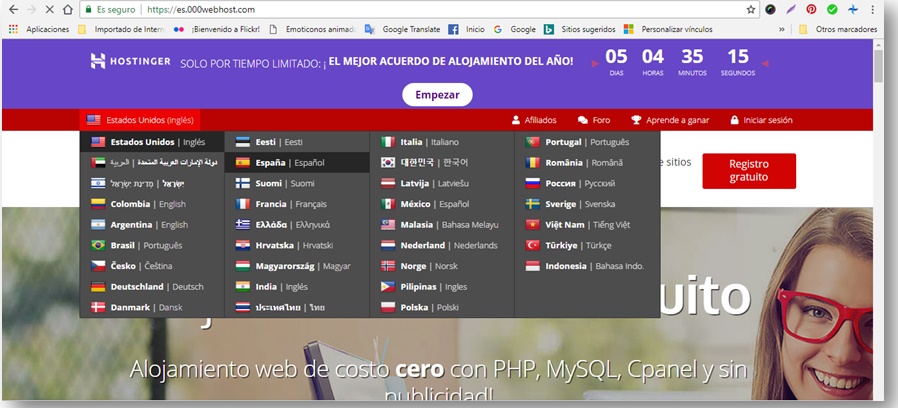 A través de la dirección URL: http://es.000webhost.com podrás conseguir un subdominio de manera gratuito, que te permitirá llegar a Wordpress, sólo debes ingresar y escoger el idioma de tu preferencia