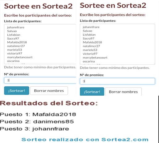 Los ganadores serán escogidos con el sistema aleatorio de sortea2.com1