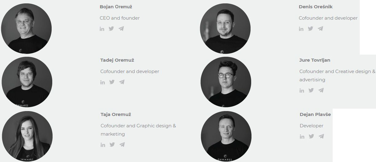 Every great project needs an even greater team. Emmares isn't exceptions. Emmares Key team consists of eight people. All of them experienced professionals with a lot of offering for the development of the company. They are CEO-Founder, CoFounder and Developer,Cofounder and Creative design & Advertising, Cofounder - Graphic design & Marketing, And Developer. you can kindly visit theirs personal linked In profile are provided in the MoneyToke official website to know more concerning their track record and experiences.