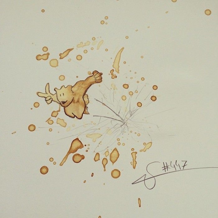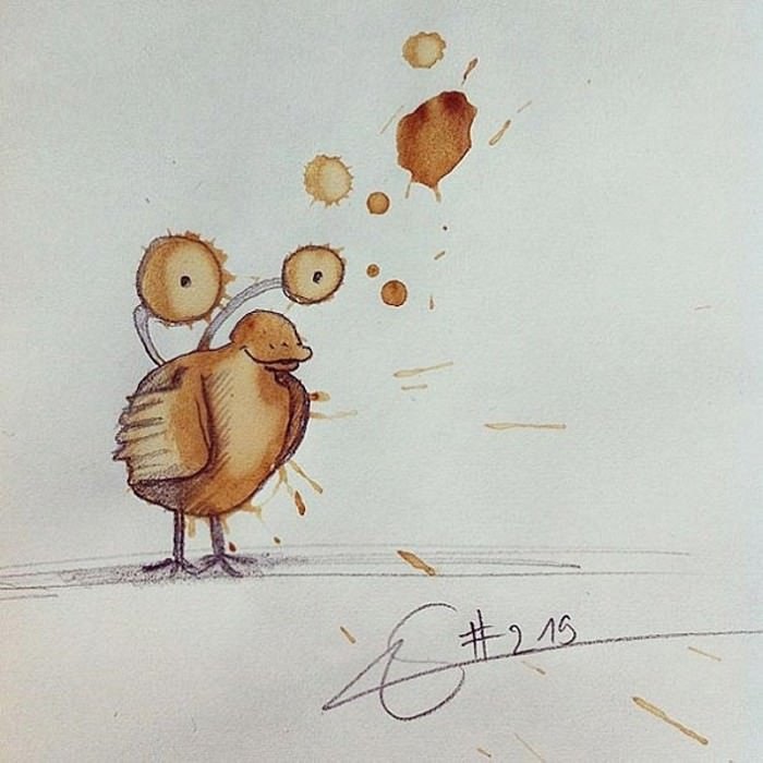 şimdi burada göreceğimiz fotoğraflara adeta can veren bir insanı göreceğiz bu insan kahve dökülen kağıtların üzerine resimler çizerek bizlere keyif veriyor.