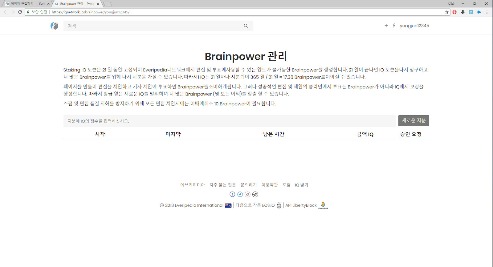 Everipedia’s token, IQ token, must go through a staking process, just like an EOS coin. After staking the IQ token, users can suggest edits, or vote on governance processes. IQ tokens are staked to BP (Brain Power) tokens on a 1:1 ratio. Also, in order to protect the network from attacks, staked tokens are locked up for 21 days.