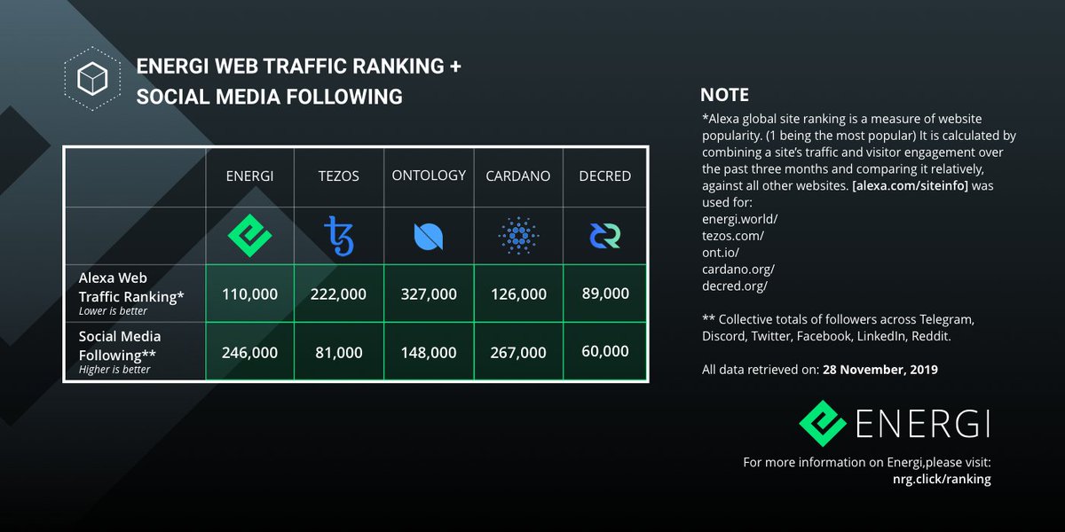 Energi Web Traffic Ranking + Social Media Following vs Competitorsdimlop (30)in #energicrypto • 6 years ago https://twitter.com/Energicrypto/status/1200368208051658752 #worldadoption #nrg #webtraffic #socialmedia