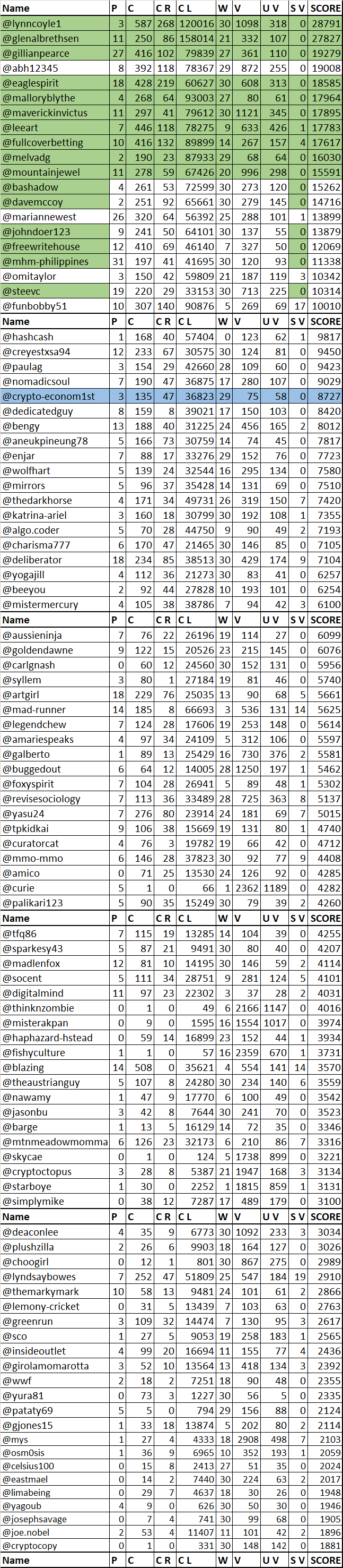 Well done for making it to the top ten @eaglespirit. You're not far off the top three! Keep at it. 😁