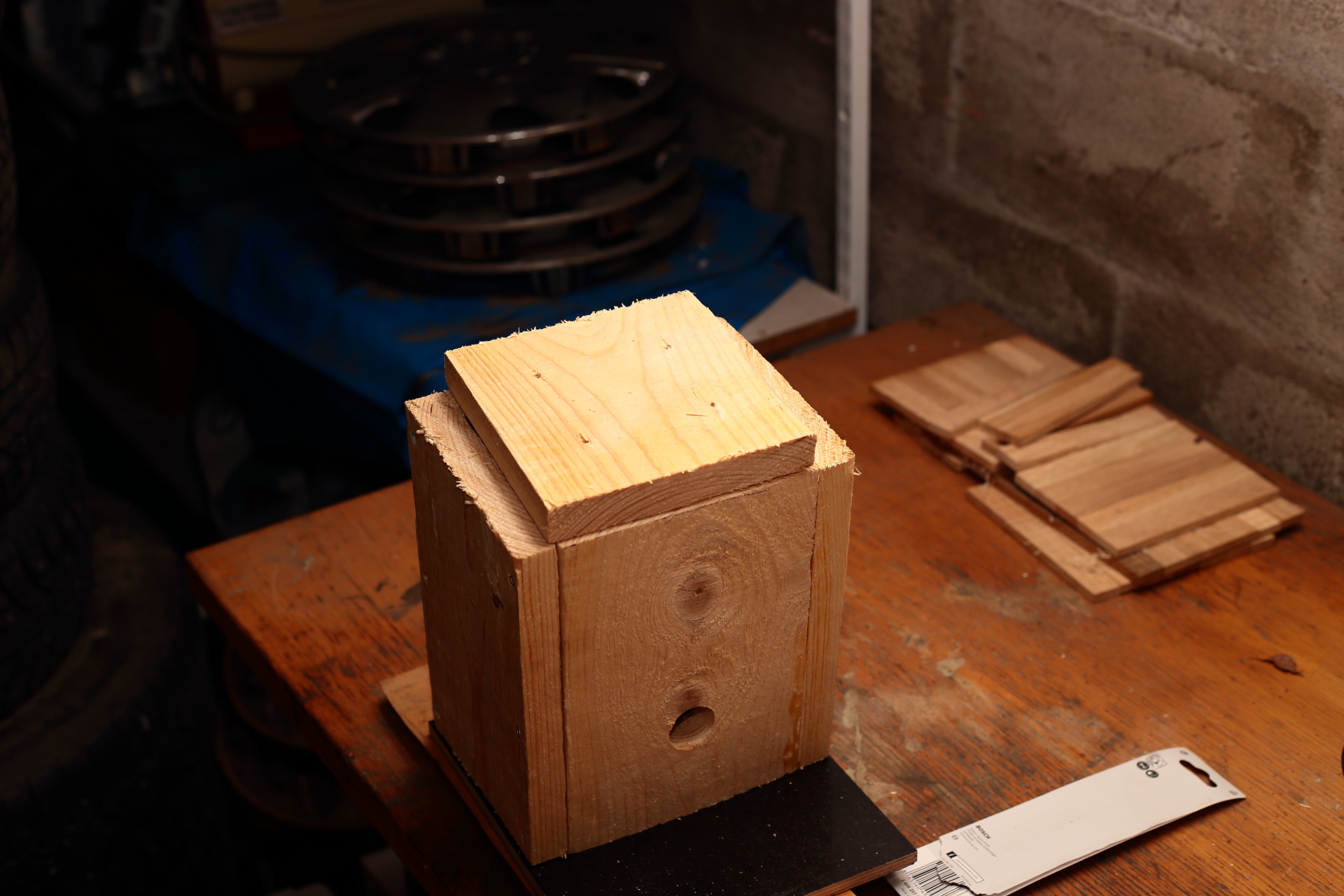 Before attaching the final piece, it's always important to check no screws (or nails) are poking out into the birdhouse. Any sharp objects are an extra danger to the birds, so I checked carefully everything seems good.