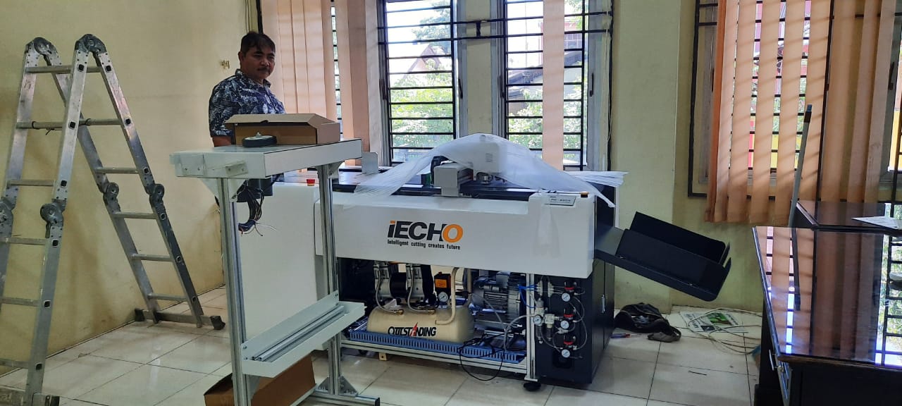 The iECHO PK0604 EOT Flatbed Cutting Plotter Machine is a Paper, Sticker, Vinyl, etc. Cutting Machine that can take various shapes to follow the existing file, without the need for Die Cut (Plong Knife Mats) and without a Minimum Order (you can make 1 small one). This iECHO PK0604 EOT Flatbed Cutting Plotter Machine is a Solution for making Dummy Products, Sample Packaging Samples, and Production on a small scale for the manufacture of custom shape models made from Paper, Corrugated / Cardboard, Foam / Cork, Plastic, Sticker, Vinyl, etc. short and straightforward. Without having to make a Die Cut / Plong Knife Mat, so a lot of materials, costs and time can be cut to make the finished product. It is very suitable to use this iECHO PK0604 EOT Flatbed Cutting Plotter Machine for Packaging businesses which usually make Dummy Samples before large productions, Paper Crafts, Handicraft, Gifts, Souvenirs, Invitations, Advertising / Billboards, Branding Projects, Interior Exterior Design, Industry Shoes / Garments to make Patterns, Signage, and many more depending on the creativity of the Visual arts world.