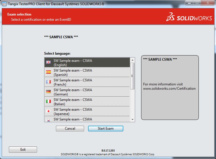 Solidworks Certifiticationimusaj94 (42)in #engineering • 8 years ago Did you know that you can get certified by Solidworks ? And get any of those certifications. First you must register and buy any Exams Here Then must download TesterPRO Client to take the exam Here This is how the TesterPRO Client look.You can start the exam you have paid. And then if you pass the exam Login Here to see your certificate. All the best! #solidworks #technology #education #design