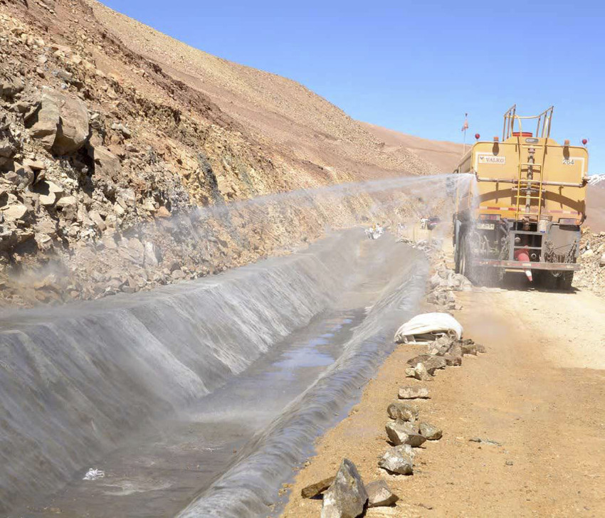 Once installed, Concrete Canvas is ready flushed with water. Water used is not necessarily clean water. Sea water and even water comberan can. The result is the same. After two hours, Concrete Canvas is set, hardened like concrete and ready to function.