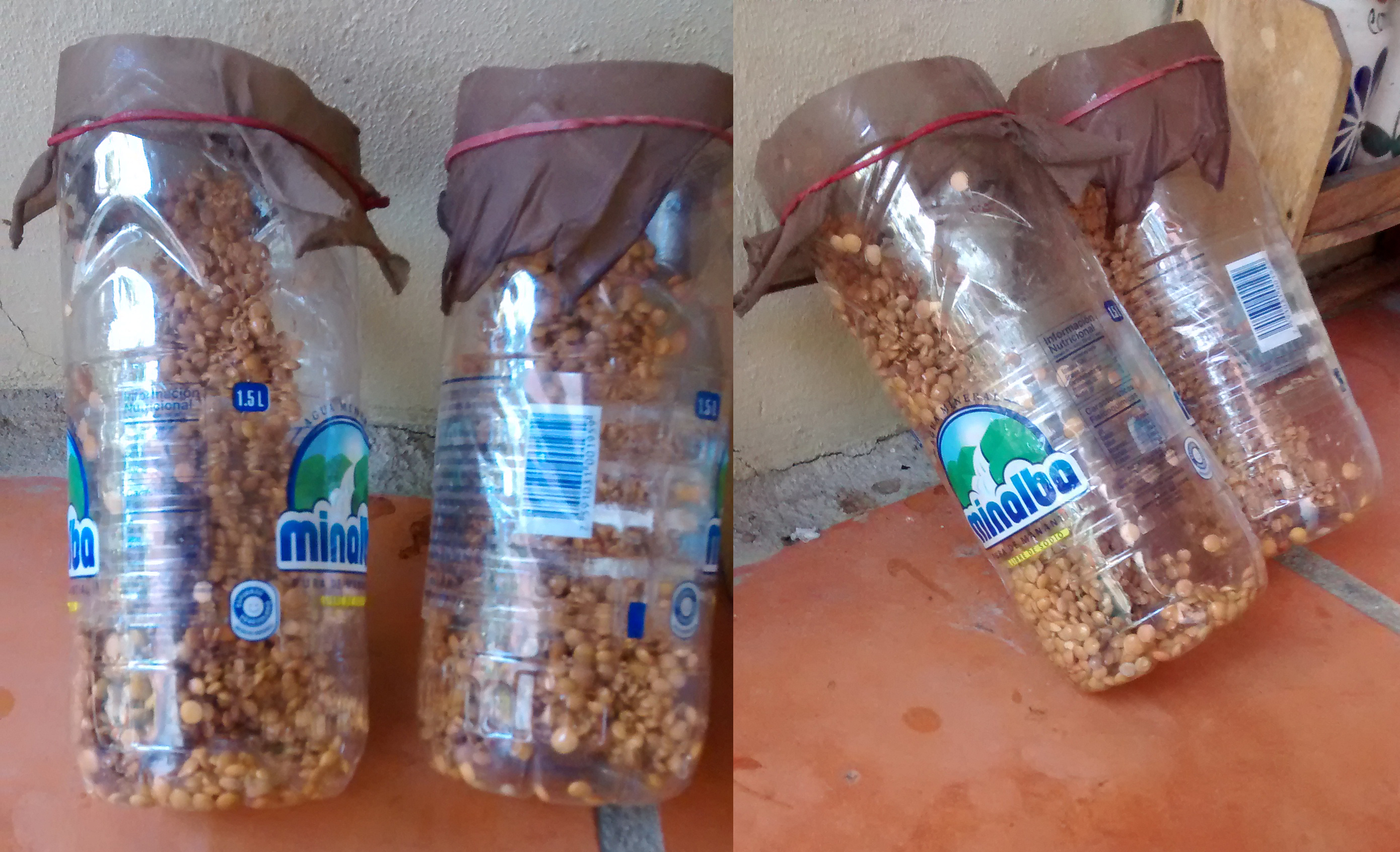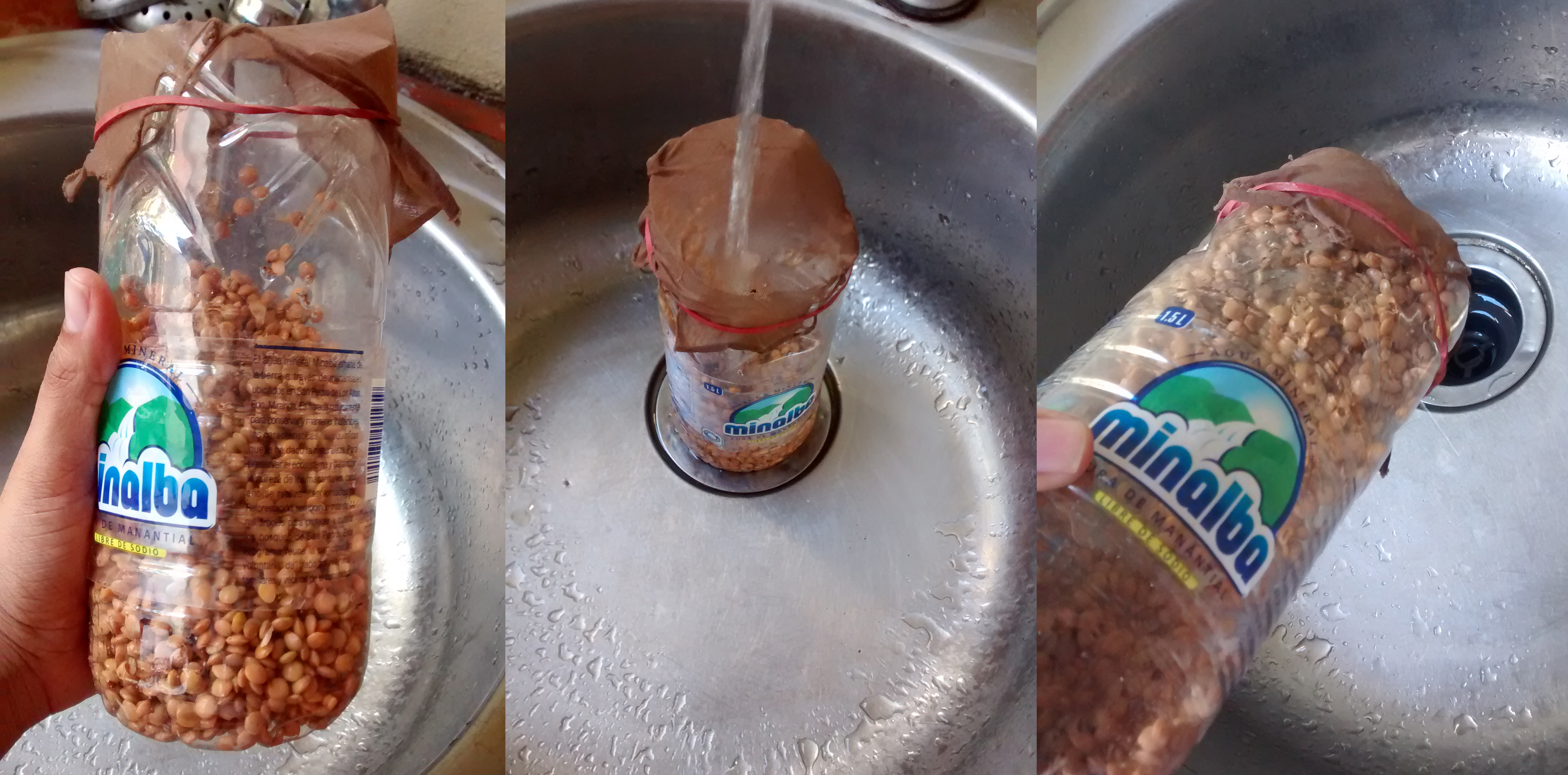 we place the grains to germinate again and leave it in vertical position all night, this to create space and let it germinate easily.