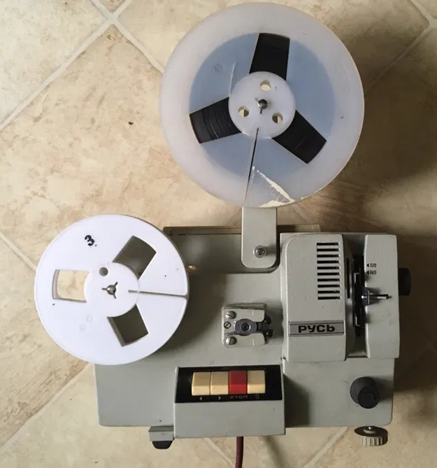 Nie pamiętam czy taki, ale na pewno rus... radziecki. :) Szczerze mówiąc nie pamiętam czy te projektory odtwarzały dźwięk, ale wydaje mi się, że to były filmyy dźwiękowe.
