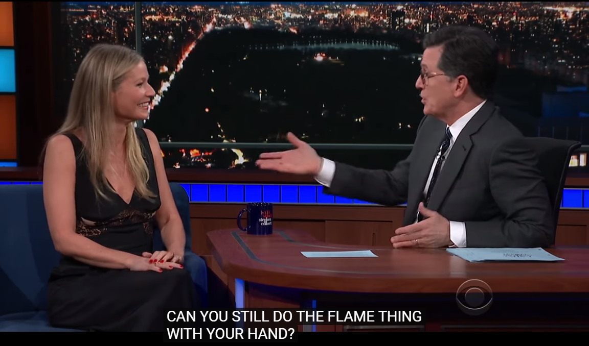 In "The Late Show with Stephen Colbert" Pepper Potts hinted some real action from her side, let see the shots of that show..