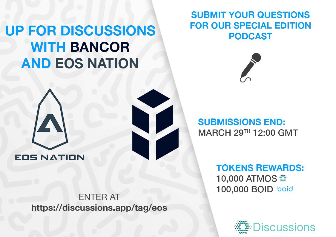 ⭐Special edition podcast ft. Bancor and EOS Nation.🔝 Submit your questions here for token rewards!🙌🎁 (10k ATMOS + 100k BOID)