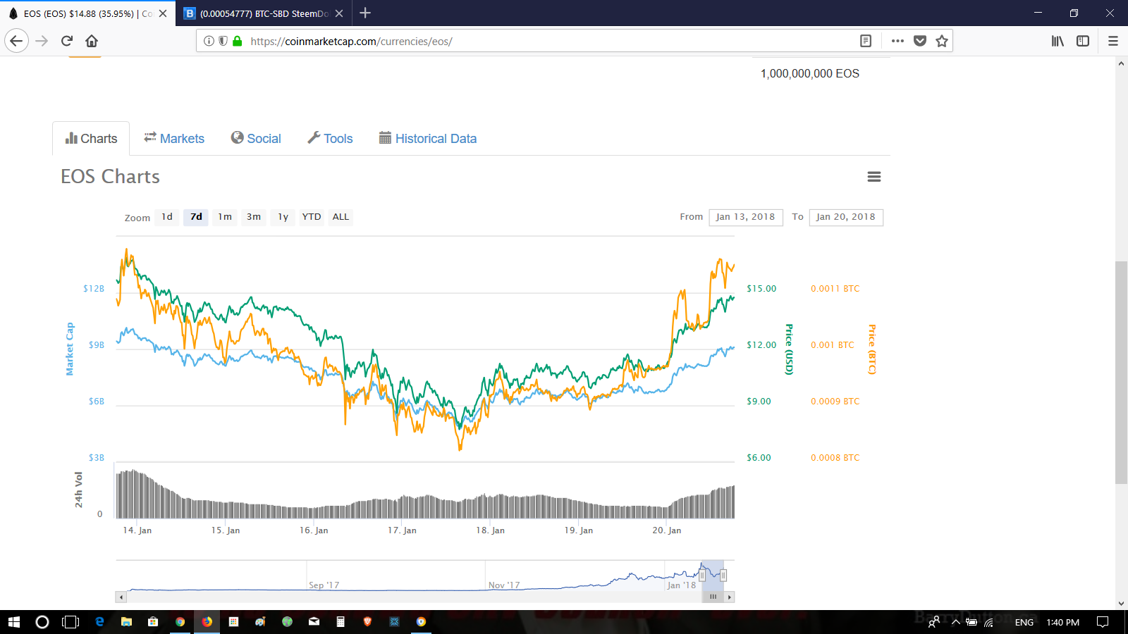 EOS holding STRONG in Shaky Market! UP 31% w. Elevated/Sustained Highs. | Approaching $15 Again after Bloodbath Week.