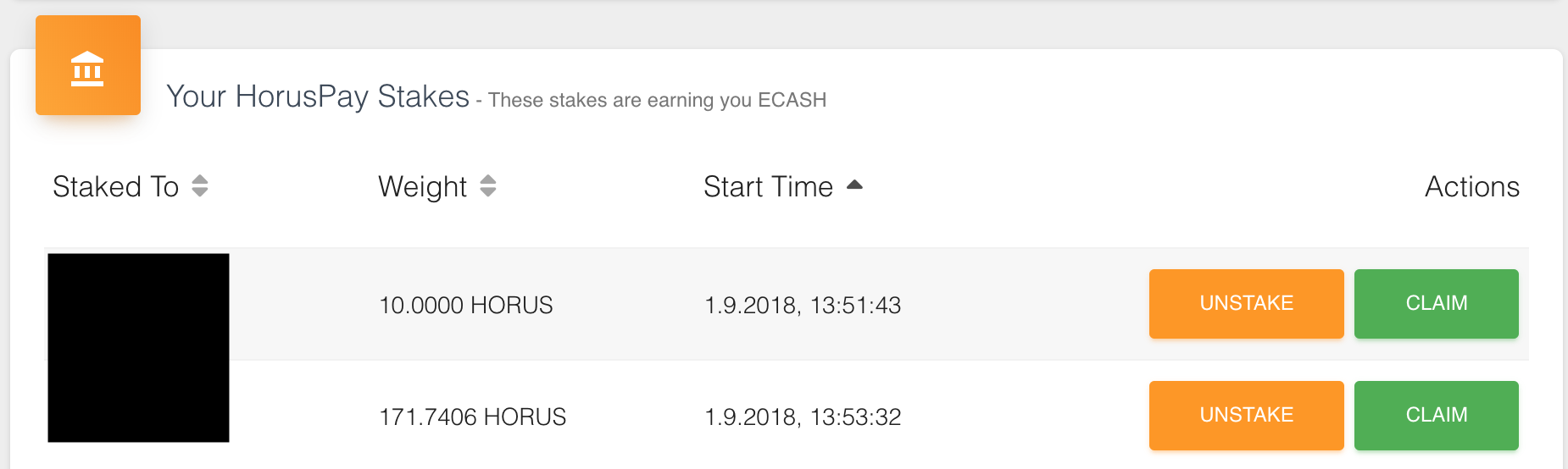 Until now those were of no real use unless you sold them on one of the EOS-Exchanges. This has now changed! From now on you can receive ECASH for staking your valuable HorusPay tokens!