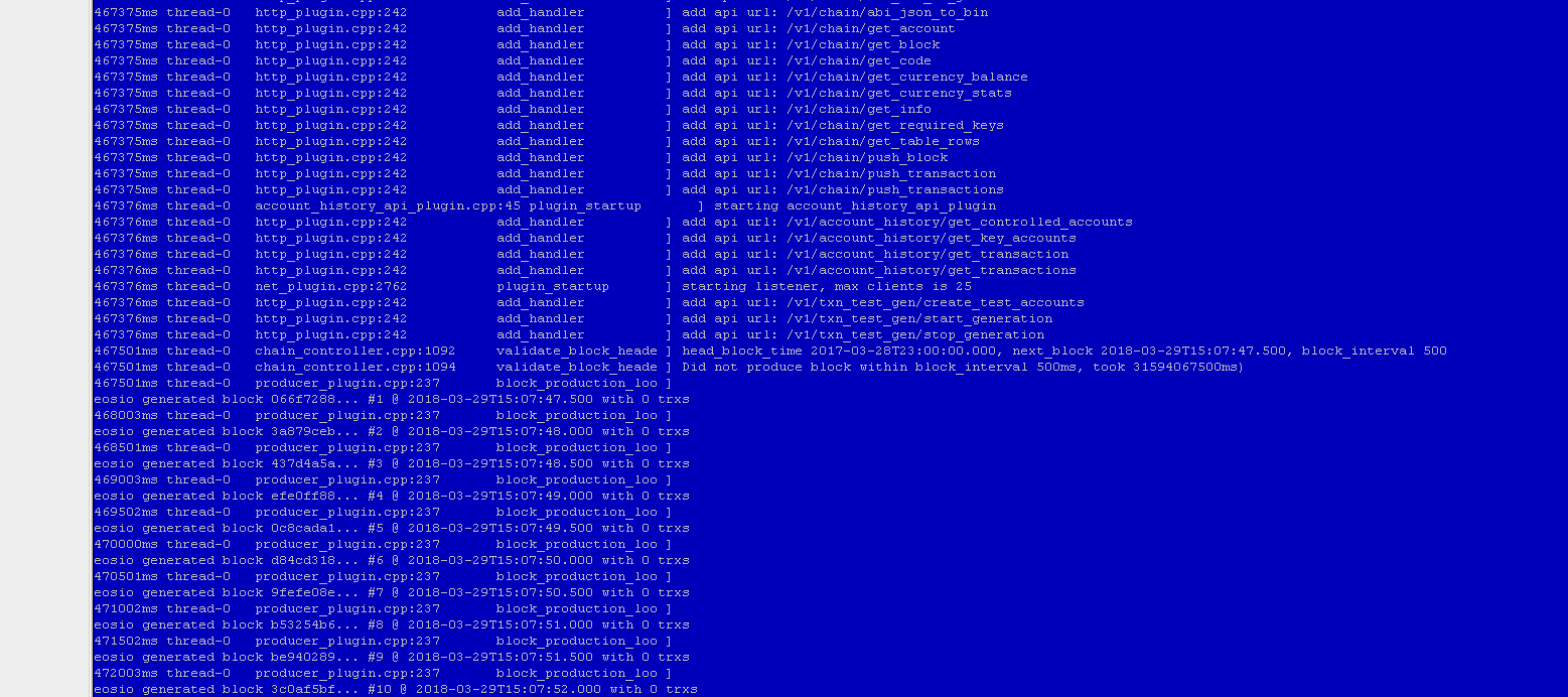 So eosio start producing blocks..