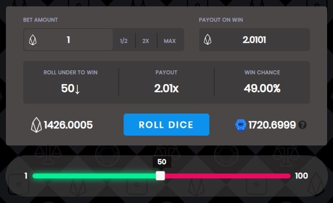 EOS is an amazing blockchain because, unlike Ethereum, there are no transaction fees (or "gas" fees) that need to be paid. Because of this, transactions are FREE and very, very fast. These advantages have caused several dice games to migrate from Ethereum to EOS, and the result is fantastic! Free to play (no transaction fees, but you do have to bet real EOS) and no delays!