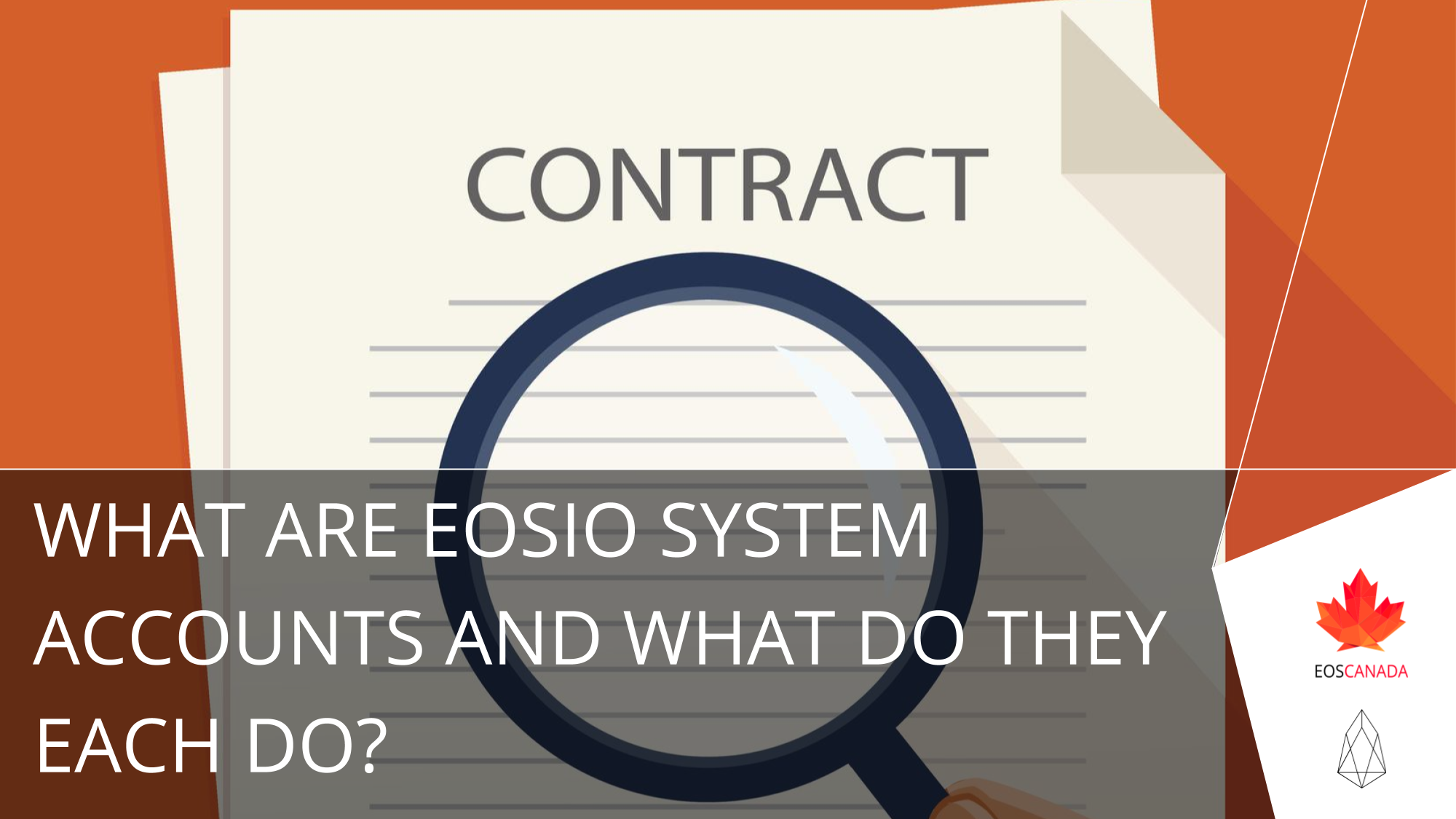 Keen observers will have noticed that on the EOS blockchain there are system accounts that control various functions. These are all denominated by the prefix eosio.*. At EOS Canada, we felt it would be useful to provide an overview of which system accounts exist, and what they each control.