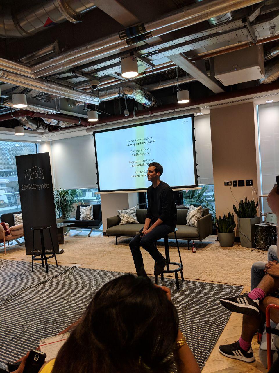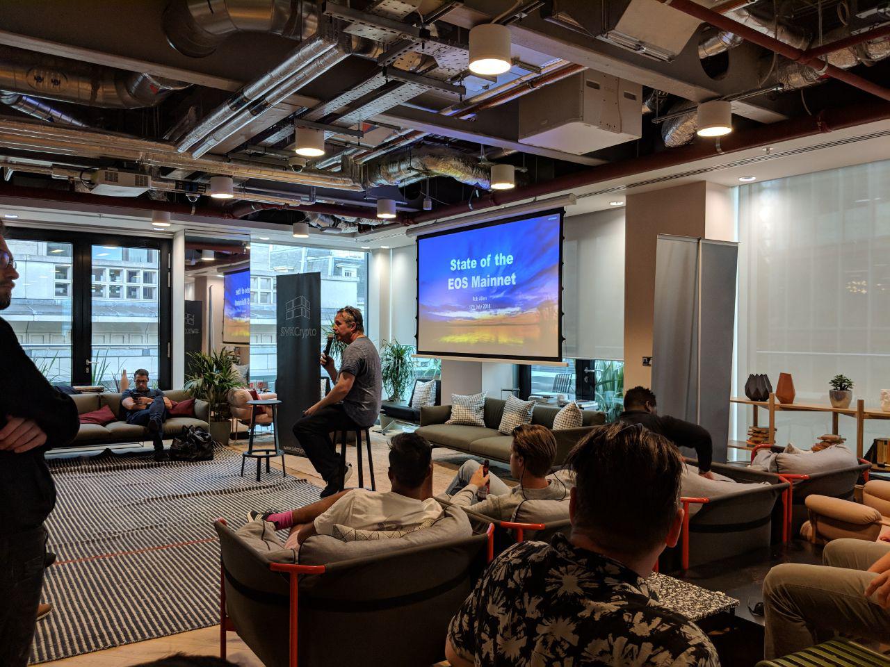 At ‘When EOS Rules The World' event in London hosted by @SVK_Crypto, a VC fund which recently received a major investment from Block.one, eosDAC co-founder Rob Allen was invited to present a block producer’s view of the 'State of the EOS Mainnet'. He spoke alongside other presenters such as Brendan Blumer (CEO of Block One), Serg Metelin (Head of Developer Relations at Block.One), David Packham (founder EOS 42), and others.