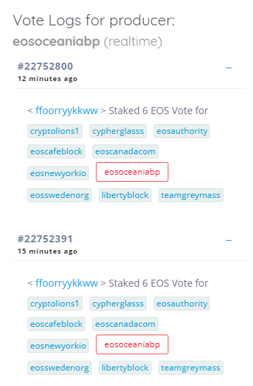 Bellow is the example of how @forykw votes for @eosoceania, "eosoceaniabp" account on EOS.