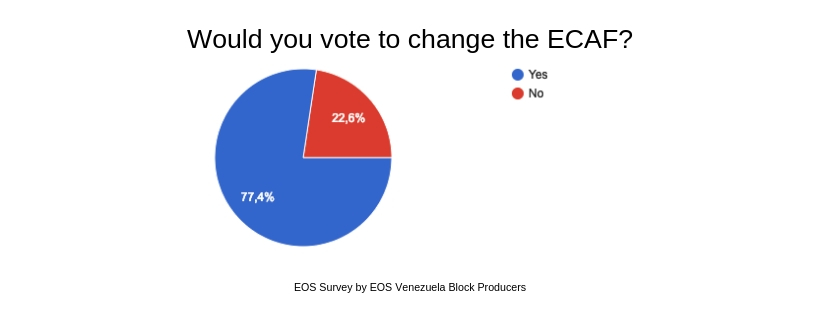 Around 69% of users are aware of the EOS Core Arbitration Forum (ECAF), but a little 10% of them identified the acronym ECAF as a some sort of EOS finance center. Only 11% of the participants declared to ever submitted a claim to the ECAF, but about 77% of the total participantes of the survey show to be in favor on voting a change for the role of ECAF on the EOS blockchain.