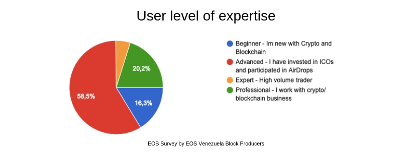 On the initial assessment to who our user is, we covered less than 17% of new crypto users, participants that identified themselves as "beginners" that are on-boarding to the crypto and blockchain technologies through the EOS platform.