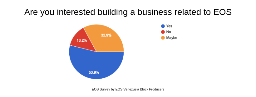 Half of our participants declared themselves as entrepreneurs, a good statistic thinking this is the time where we need players to nurture the growth of the ecosystem for the long term success. A little over the half of these entrepreneurs, are interested in developing some business related to EOS.