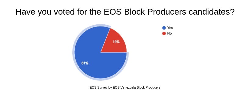Interesting enough, only 81% of the participants declared they have voted for the EOS Block Producer candidates, with a 14% that said they don't even know how to vote, this last group we could identify is in its majority Spanish-speaking new users. Only half of the total participants of the survey have cast their 30 votes for BPs.