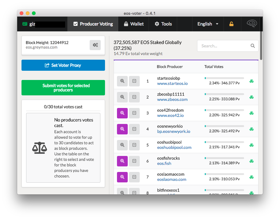 The EOS-Voter wallet from the Greymass