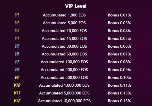 This is really interesting. Once you've wagered at least 1000 EOS, you become a VIP. The following levels are available and give you cashback on playing games: