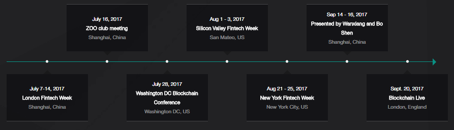 Man, this timeline is like no other out there. Just a few days ago, we found out that EOS will go to London Fintech Week and are looking for some people to come with. Now they're showing more presentations that they are scheduled to go so far. They will go to Washington DC, San Mateo, New York, London, and even in China where Fenbushi Capital Members Bo and Wanxiang will present it!