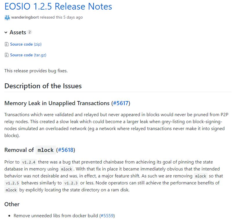 Eosio V1.2.5 upgrade was released.