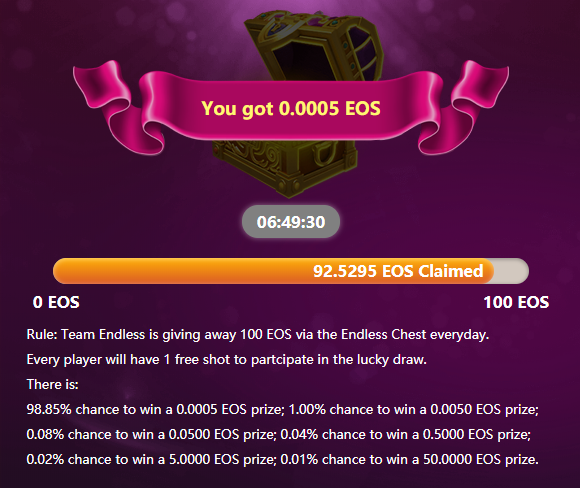 Team Endless is giving away 100 EOS via the Endless Chest everyday.