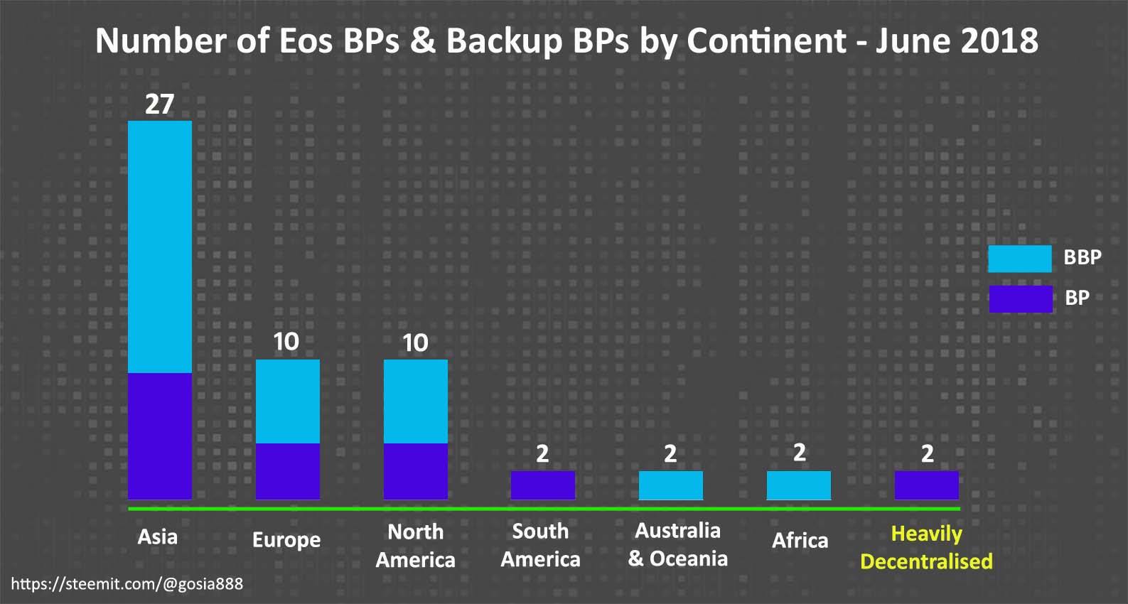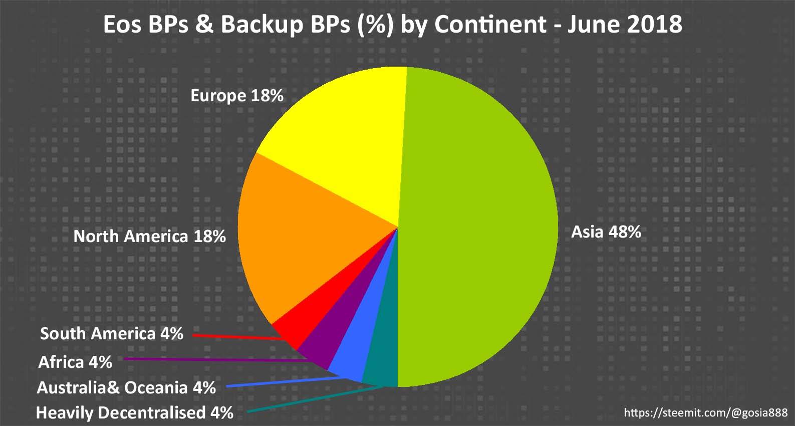 Distribution of Eos Block Producers and Backup Block Producers by Continent - June 2018