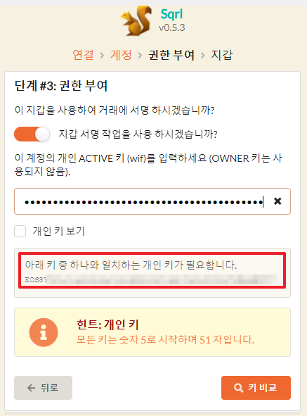 이제 아래에 나오는 퍼블릭키에 맞는 프라이빗 키를 넣습니다.