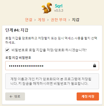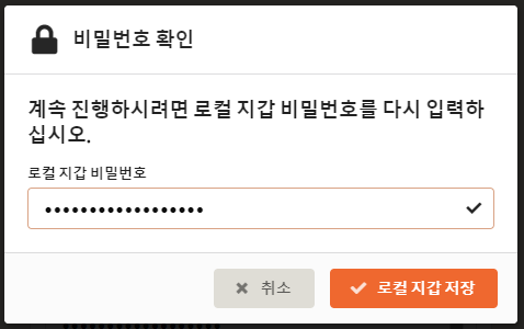 로칼 지갑의 비밀번호 지정을 합니다.