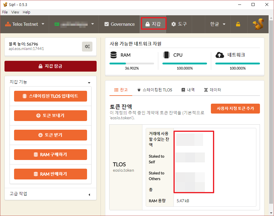 이제 지갑으로 이동해서 본인의 TELOS 수량을 확인 해 봅니다.