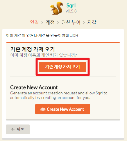 기존 계정 가져 오기를 선택 합니다.