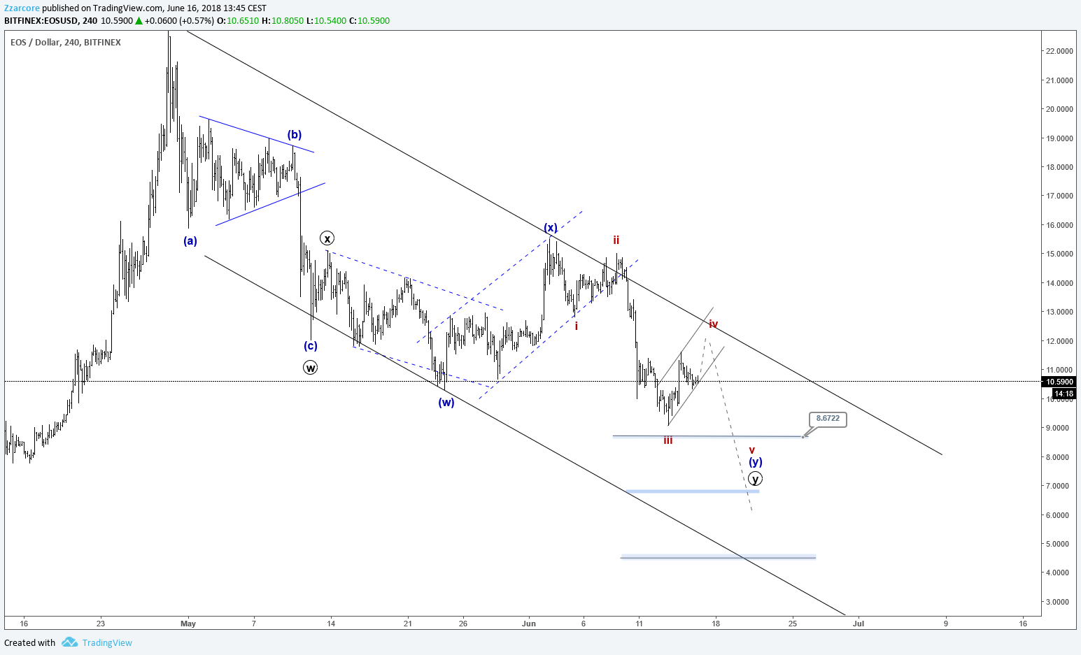 Since then EOS has fallen back a little bit, but I'm still expecting some more upside. However, there are many possible corrections, and you should not trade this to the upside. If you want to trade this, you use this correction to fill shorts.