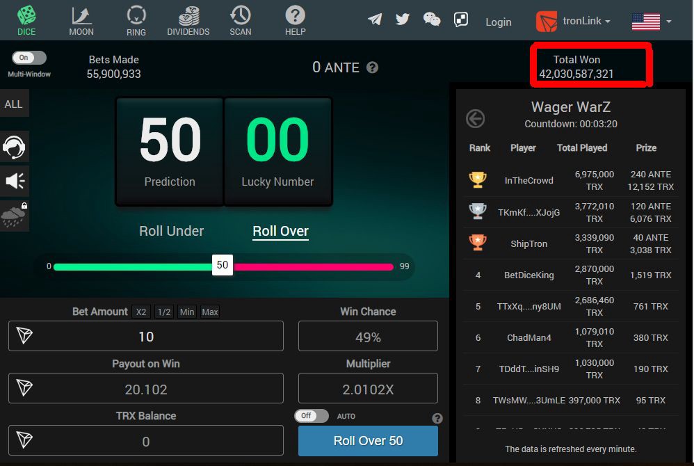 The EOSex hybrid exchange currently supports TRONBET (ANTE) and will be adding even more Tron-based tokens in the coming days and weeks. Tronbet is the first ever decentralized app on the TRON chain. It is a community-owned and transparent gaming platform, which means that the fairness of all bets can be proven. Tronbet is in dominant growth mode and a bull market when almost everything else is in a brutal bear market. At the time of writing this article, 42 billion TRX have already been paid out to winners on the platform.