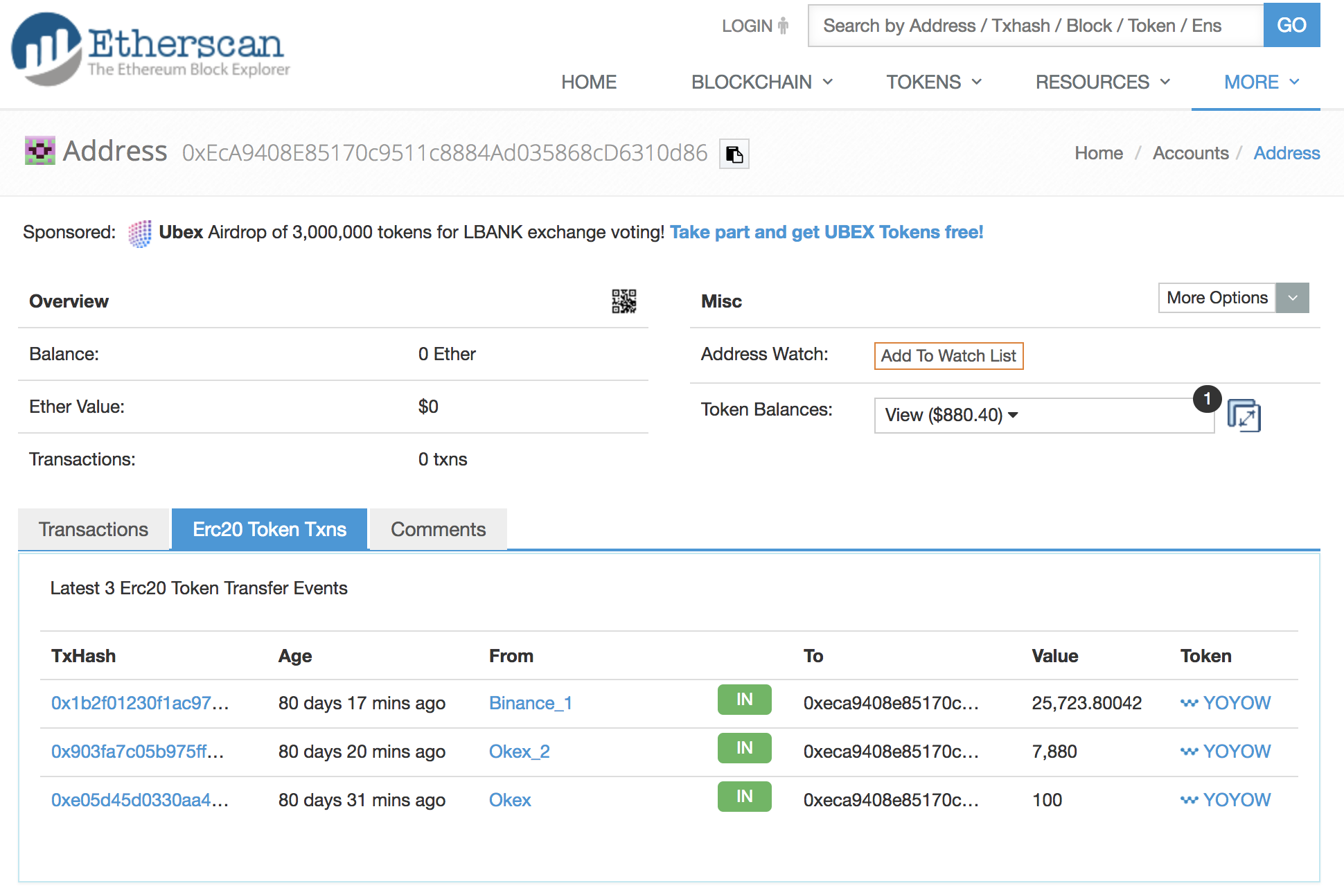 这个是ERC20的转帐记录,0xEcA9408E85170c9511c8884Ad035868cD6310d86这个地址是属于YOYO控制的,这个地址的token在8个月后仍然存在。