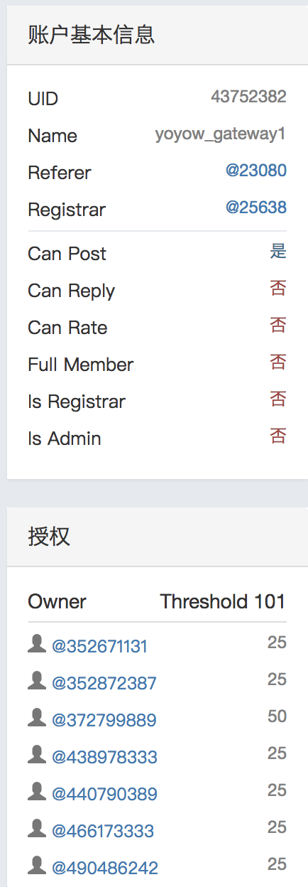 名字就叫"yoyow_gateway1"了,而且是个Owner多重签名帐户。