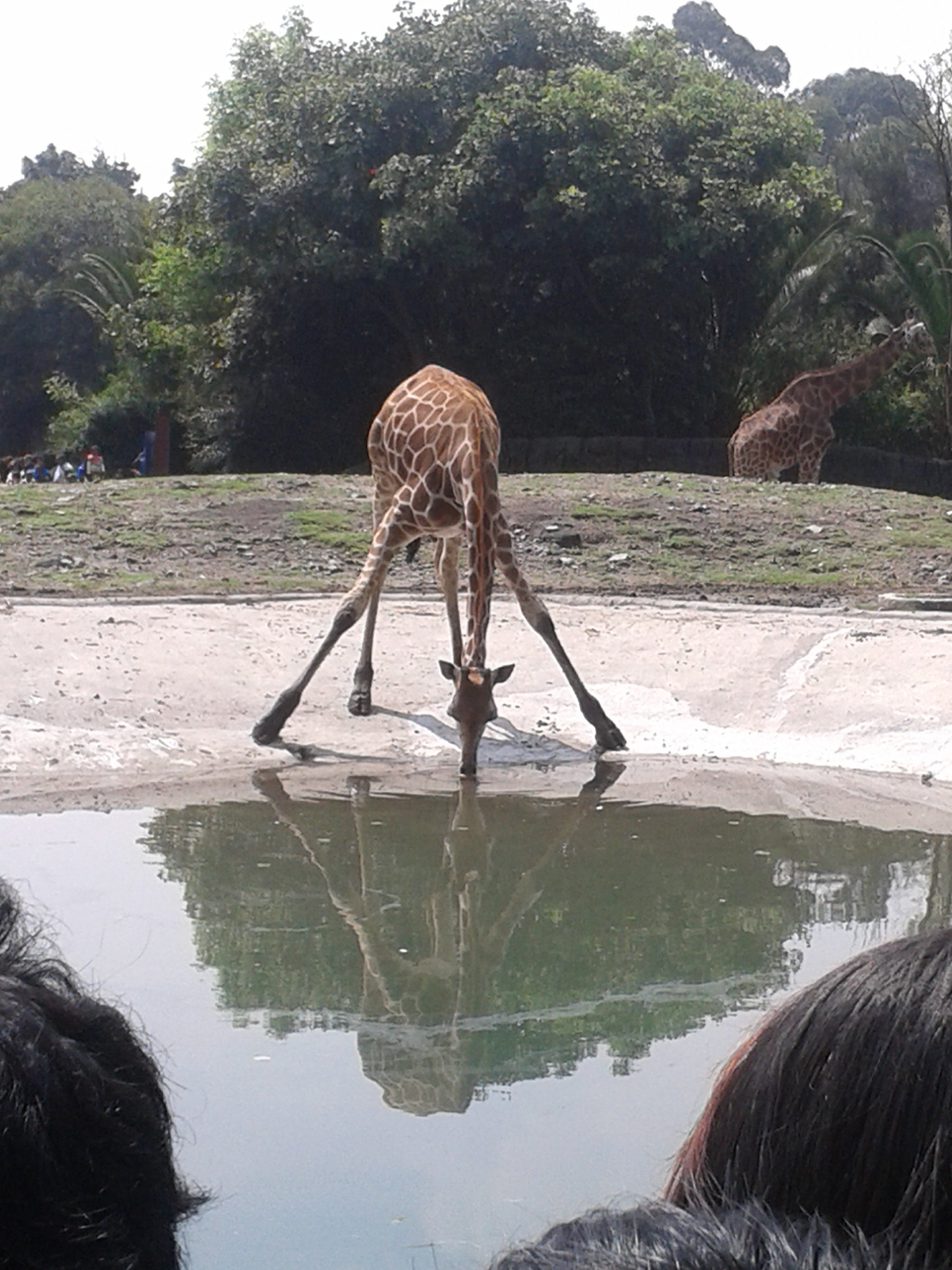 Miren que curioso como la jirafa toma agua. Abriendo sus patas.
