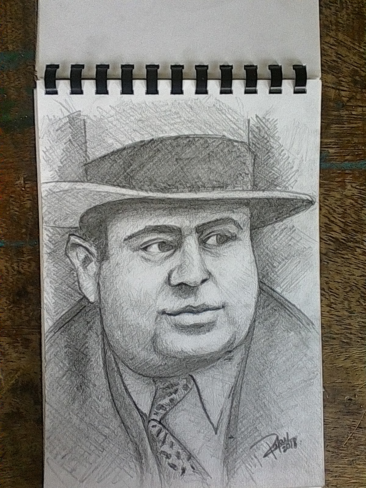 Desde ya empiezo y aquí les dejo uno de mis trabajos, espero que les guste. Es un dibujo trabajado a lapiz de grafito, la persona retratada es Al Capone.