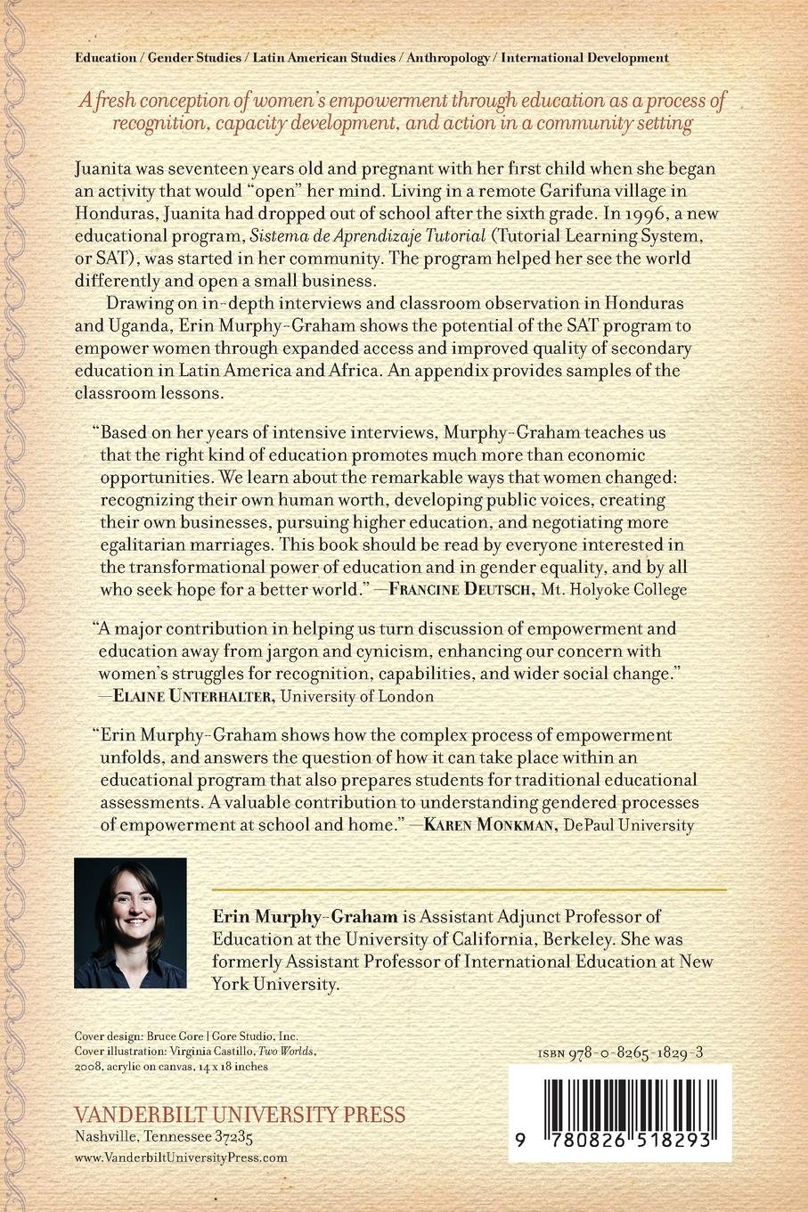 Graham, E. M. (2012). Opening Minds, Improving Lives: Education and Womens Empowerment in Honduras. Nashville, Tennessee 37235: Vanderbilt University Press. Retrieved from: http://gen.lib.rus.ec./book/idexphp Date accessed: Aug. 19,2017