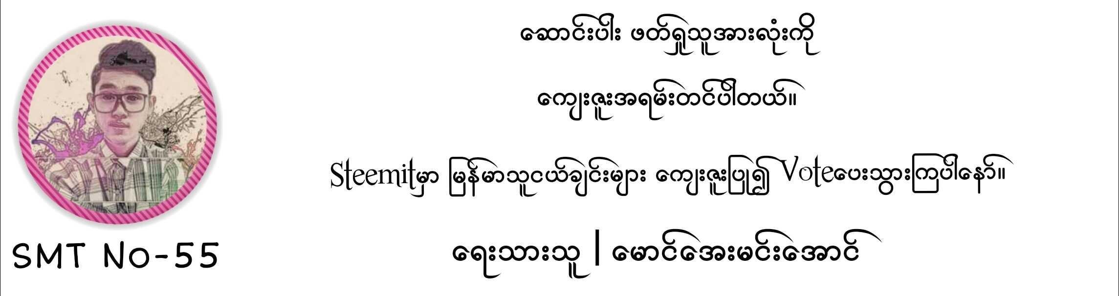 က်ေနာ္လြန္ခဲ့တဲ့လပိုင္းေလာက္က က်ေနာ္ Steemitမသုံးဖစ္ပါဘူး။အခုေတာ့ က်ေနာ္ အခ်ိန္ကို အက်ိဴး႐ွိ႐ွိသုံးမယ္ဆိုရင္ၿပီ ျပန္လည္သုံးဖို႔ လုပ္ေနပါတယ္။က်ေနာ္ အခု ေက်ာင္းကေန Petanque Playerအဖစ္ ေနျပည္ေတာ္ Gold Campမွာ စခန္းဝင္ေနရပါတယ္။