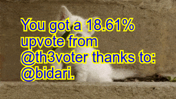 You got a 18.61% upvote from @th3voter thanks to: @bidari!