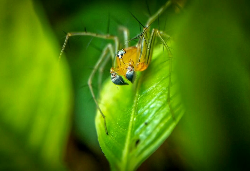 Some sort of jumping spider...cool phato. I you like makros the you will like my work ;) have a god day. Happy steeming