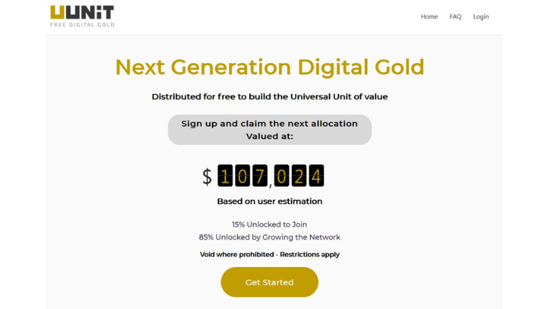UUnit is a unique project aiming to create the next digital gold by building a distributed community for a new cryptocurrency. Unlike all the previous digital currencies, UUnits are distributed for free to grow the community and create value. As UUnits are free there is no risk to lose money, and only a name and email is required to join. However, the amount of UUnits distributed goes down for each new community member, so the earliest adopters have the highest potential reward.