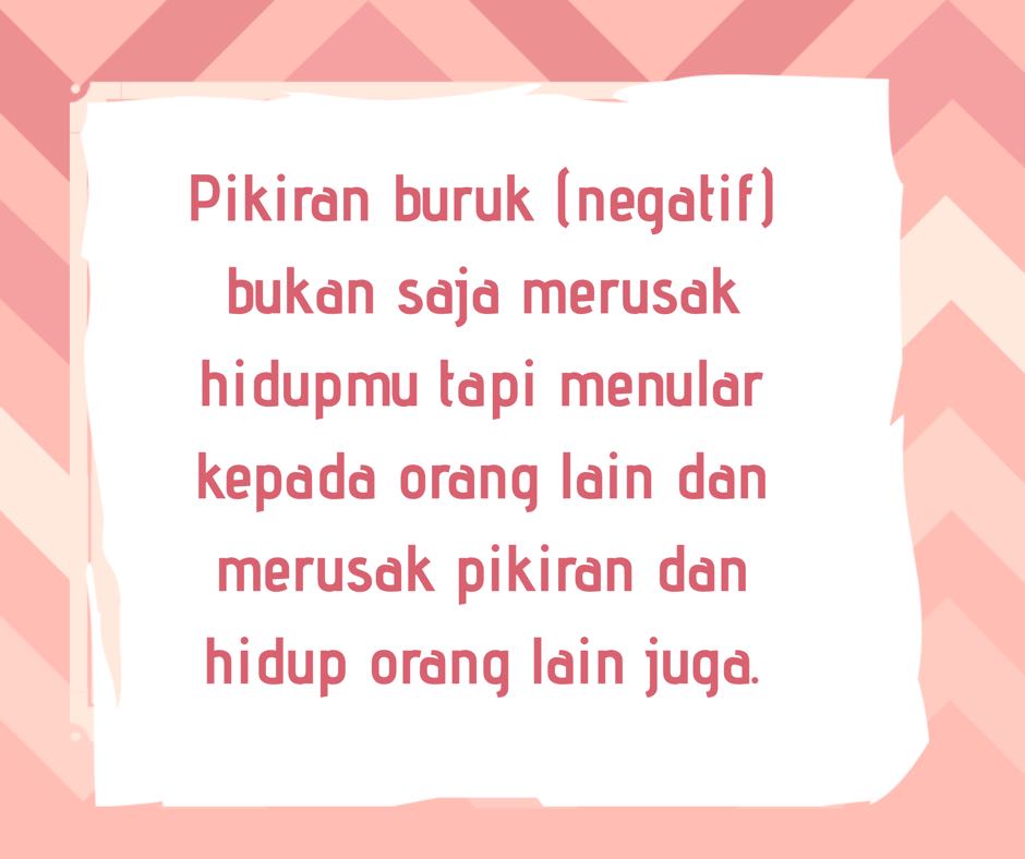 Pikiran buruk (negatif) bukan saja merusak hidupmu tapi menular kepada orang lain dan merusak pikiran dan hidup orang lain juga.