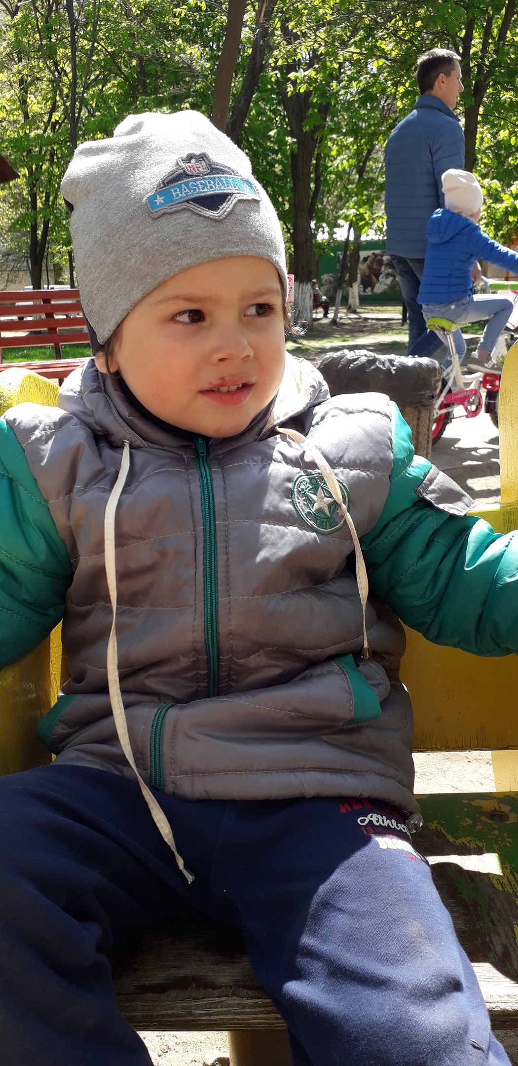 My daughter @kristinaljfom has already written that we have spent our day off altogether. I went to the park with my daughters and a little grandson at first. And after it we went to the playground. As it is holiday in our country, we decided to make my little grandson happy on this day and that is why went there. Kirill really got a lot of pleasure. He was playing in the playground for a few hours and got tired very much. When it was time to go home, he laid on the swing and decided to take a nap there.)) We told him to go home and sleep in his bed but he refused to leave the swing. You can see this in the picture. At last we promised him to buy a toy and only then he went home. ) We really enjoyed our time together despite the fact that Kirill was a bit naughty.) But when we see his smile, we are ready to forgive him everything.)) Happy Easter dear eSteemians and have a nice day!